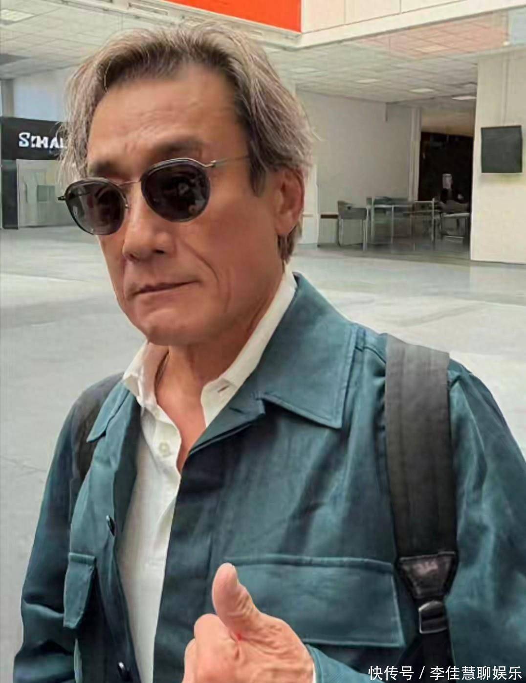 但别急着替他伤感,这老哥们儿转身就在深圳机场给网友上了一课。有路人拍到他独自推着行李箱,穿的不是什么限量款,而是洗得发白的深色夹克,脚踩一双普通运动鞋,背的包边缘都磨出了毛边。最扎心的是那张脸——头发稀疏得能看见头皮,抬头纹深得能夹死苍蝇,老年斑清清楚楚。可他呢?正乐呵呵地帮旁边的大妈抬婴儿车,笑得见牙不见眼。